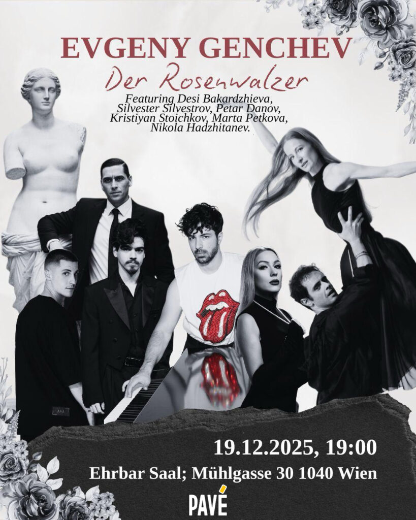 Am 19. Dezember präsentiert PAVÉ „Der Rosenwalzer“ – ein Konzert-Spektakel von Evgeny Genchev mit den Mitwirkenden bulgarischen Schauspielern Desi Bakardjieva, Silvester Silvestrov, Petar Danov und Kristian Stoichkov. Die Magie wird durch die Primaballerina Marta Petkova und Nikola Hadjitanev, die Ersten Solisten der Oper und des Balletts von Sofia, Bulgarien, vollendet.
