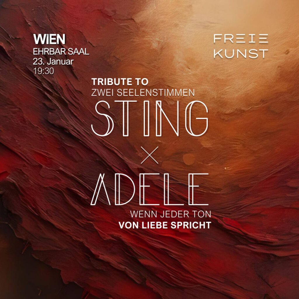 Lassen Sie sich verzaubern von der gefühlvollen Tiefe von Adeles größten Hits – darunter Skyfall, Easy on Me, Someone Like You und Love in the Dark. Ihre Musik spricht direkt zum Herzen und verbindet Verletzlichkeit mit unvergleichlicher stimmlicher Leidenschaft. In vollkommener Harmonie erleben Sie die poetische Eleganz von Sting – mit Klassikern wie Fields of Gold, Fragile und Shape of My Heart. Seine Lieder, reich an Emotionen und Erzählkunst, zeichnen lebendige Bilder von Liebe, Identität und Menschlichkeit.